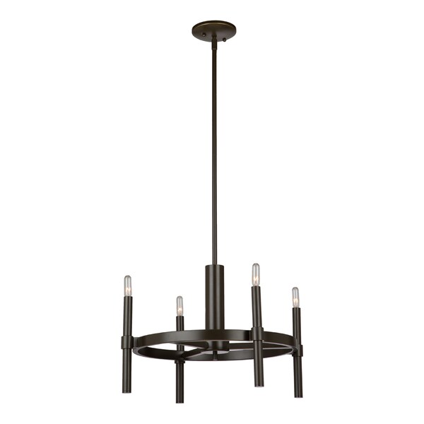The Encore collection, features precise thin candles on circular airy frames. This light design is pleasing to the eye and comes in two finishes. Shown in oil rubbed bronze and available in a plated polished nickel as well. (Extra rods included for easy height adjustment, and handstraight for sloped ceilings.)