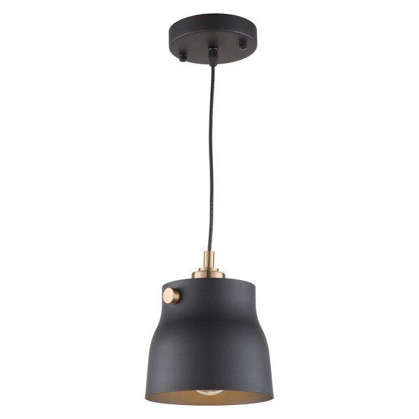 The Euro Industrial Collection Features Matte Black Metal Shades Complimented With Harvest Brass Nobs, Hardware And Rods. The Interior Of The Metal Shades Is Plated In A Reflective Brass. Single Pendant With Adjustable Black Wire. (Other Chandelier Sizes And Wall Sconce Available).