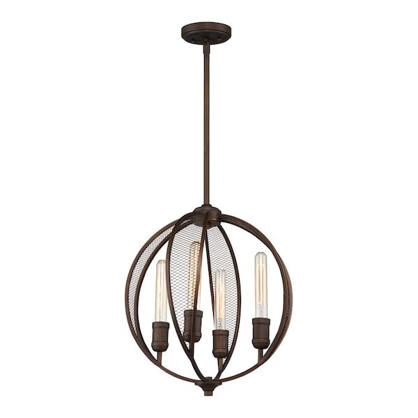 The Linden collection features a rich oil rubbed bronze frame complimented with tubular arms, and adorned with metal mesh. Comes with a hangstraight for sloped ceilings and extra rods for height adjustment.