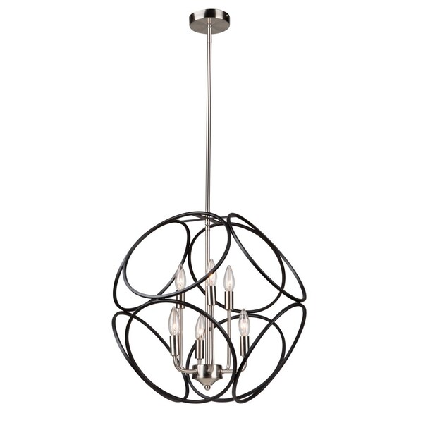 Beautifully Styled, The Sorrento" Collection 6 Light Chandelier Features A Circular Orb Designs Comprised Of Smaller Circles. The Exterior Orb Is Finished Is A Luxurious Matte Black While The Interior Frame Is Plated In A Satin Nickel Finish."