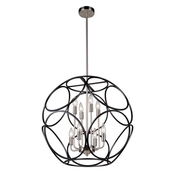Beautifully Styled, The Sorrento" Collection 8 Light Chandelier Features A Circular Orb Designs Comprised Of Smaller Circles. The Exterior Orb Is Finished Is A Luxurious Matte Black While The Interior Frame Is Plated In A Satin Nickel Finish."