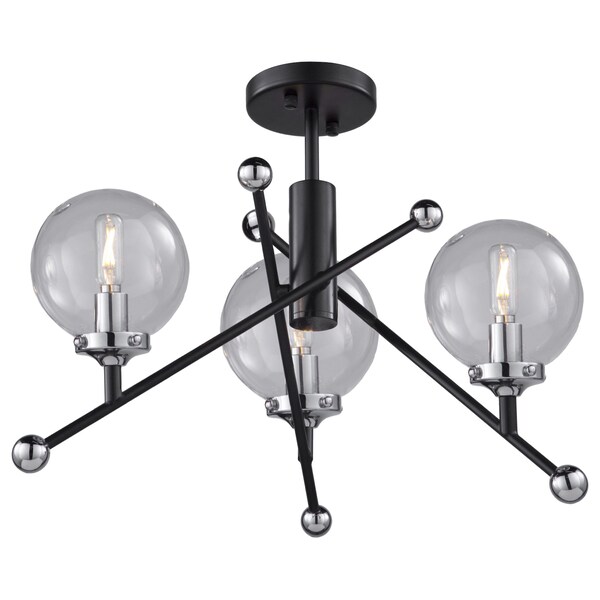 The Vero Modo Collection Is Ultra Trendy And Fits Many Surroundings. This Semi Flush Mount Has A Matte Black Body With Chrome Accents Complimented With Clear Glass Spheres. This Series Is Illuminated By G16 Led Bulbs (Candelabra Sockets). (Other Configurations Available)