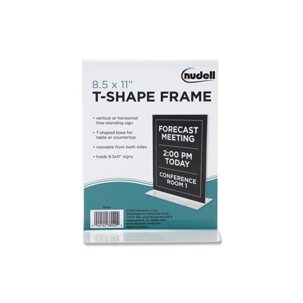 Post pictures, signs, notices and more. Protects and clearly displays insert. Stand-Up VerticalFree-standing, bottom-load design. Viewable from both directions, front and back. Frame Color: Clear; Size: 8.5 x 11; Insert Size: 8.5 x 11; Materials: Plastic.