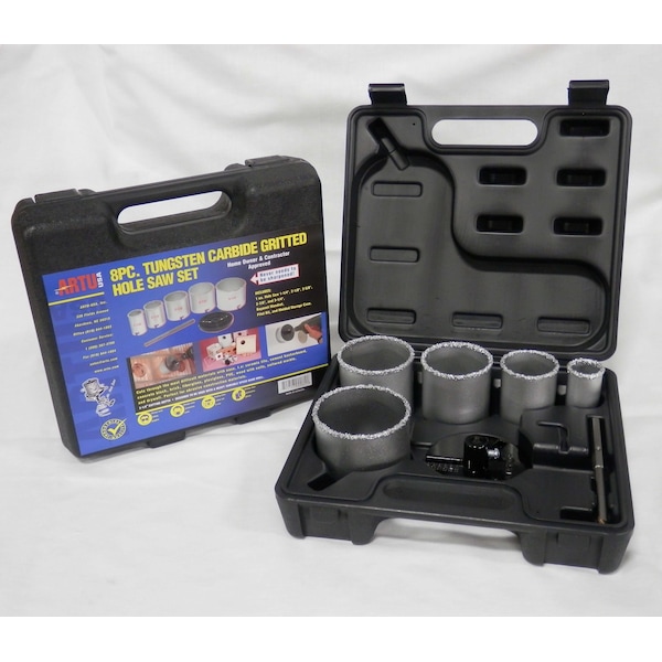 Hole Saw Set, Tungsten Carbide Grit, 8 pcs