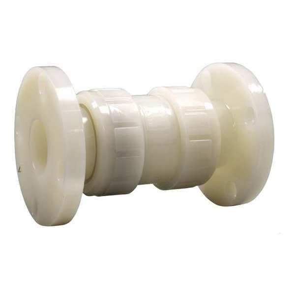 Item - Check Valves Check Valve, Flow Design Single, Mechanism and Body Design Inline Ball, Body Material - Valves PVC, Pipe or Tube Size 2 in, Connection Type Flange x Flange, Cracking Pressure 1 psi, Mounting Orientation Horizontal, Vertical, Seal Material FKM, Max. Temp. - Valves 120 Degrees F, Min. Temp. - Valves 30 Degrees F, Max. Water Pressure - Valves 150 psi @ 120 Degrees F, Max. Steam Pressure - Valves Not Rated, Seat Material FKM, Full Flow - Valves No
