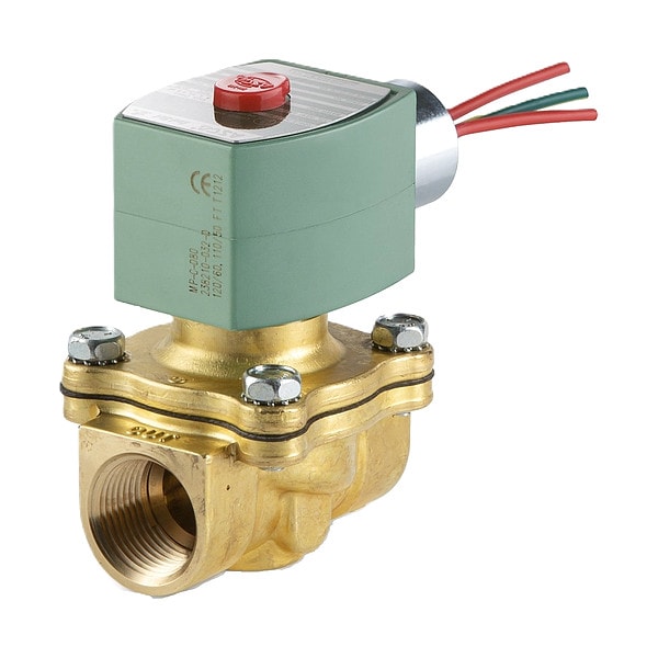 Solenoid Valve, Valve Ways 2-Way, Valve Starting Configuration Normally Closed, Valve Type High Flow, Nominal Pipe Size 1 in, Orifice Diameter 1 in, Body Material Brass, Coefficient of Volume (Cv) 13, Operating Pressure Differential Air/Inert Gas - Maximum 150 psi, Operating Pressure Differential Fuel Gas - Maximum Not Applicable, Seal Material NBR, Voltage 120V AC, Operating Pressure Differential Fuel Oil - Maximum Not Applicable, Coil Enclosure Watertight