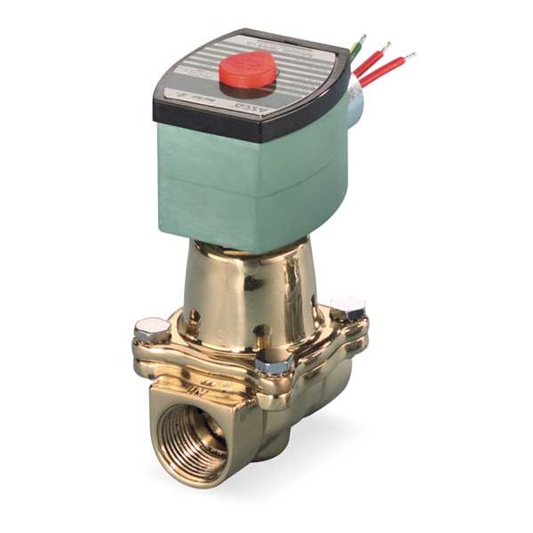 The ASCO - 8222G093 is a 2-way, 2-position, normally closed solenoid valve rated for operation with hot water and steam within the specified maximum fluid temperatures (210°F for water, 353°F for steam). It features a brass valve body with a diaphragm valve design and pilot-operated actuation. The valve is rated for hot water up to 210°F and steam up to 353°F. It includes a coil rated for 120V AC at 60 Hz with a watertight enclosure and Class F insulation. The valve is rated for use with hot water and steam within the specified temperature and pressure ranges (210°F water; 353°F steam; 150 psi hot water; 125 psi steam).