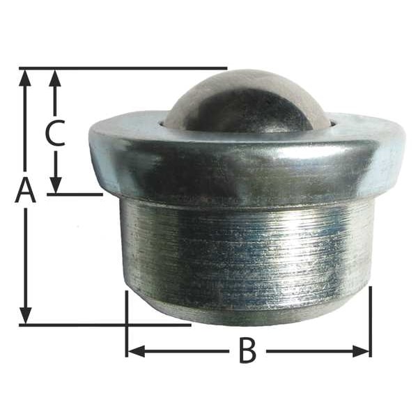 Ball Transfer, 1 in Ball Diameter - Ball Transfer, 200 lb Ball Load Capacity, Carbon Steel, Drop-In Ball Transfer Mount Type, 5/8 in Projection, 1 5/8 in Housing Diameter, Carbon Steel Housing Material, Galvanized Housing Finish/Coating