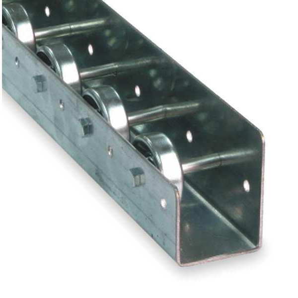 Flow Rail, Skate Wheel Flow Rail Type, Overall Length 5 ft, Overall Width 2 1/4 in, 195 lb/ft (5 ft Supports) Maximum Load Capacity, Wheels per Foot 4, Frame Material Steel, Steel Skate Wheel Material, 1 15/16 in Wheel Diameter, Inline Wheel Alignment, 3 in Roller Spacing, Light-Duty