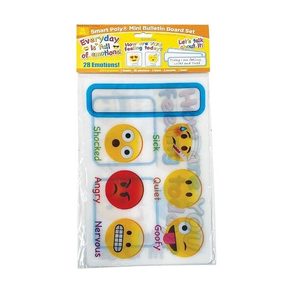 Smart Poly Emoji Emotions Mini Bulletin Board Set helps children learn how to answer the question, ''How Are You Feeling Today?''. This 35-piece set includes emojis that show a range of emotions and label each below the emoting face. Write-on/wipe-off surface lets you write directly on the surfaces and quickly wipes clean. No lamination is needed. Great for reusable learning, this heavy-duty poly material is designed to be long-lasting, easy to clean, waterproof and durable for many years. Use with dry-erase or water-based markers and washable crayons for interactive play and educational development.