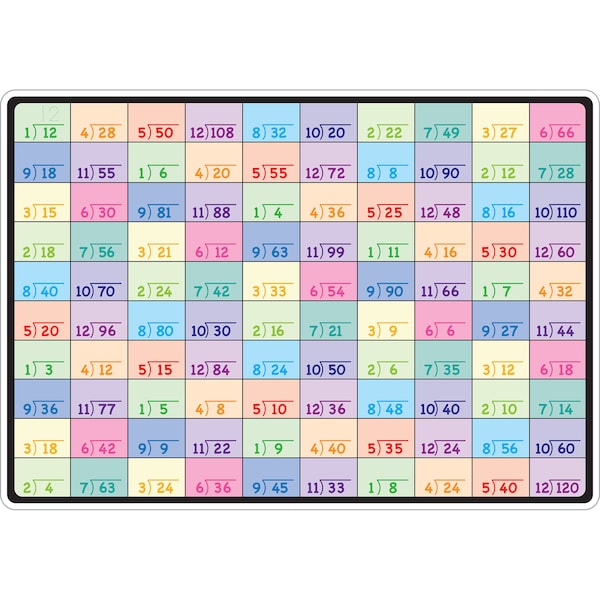 Smart Poly material has been designed for the classroom and home. The material is strong, durable, water resistant, and does not need lamination. Practice division with this learning mat. Includes tables 1-12. Heavy duty double-sided surface for fun and colorful learning on both sides. Write-on/wipe-off surface. Use with dry erase or water based markers and washable crayons. Each side is an interactive lesson. Mat measures 12" x 17".