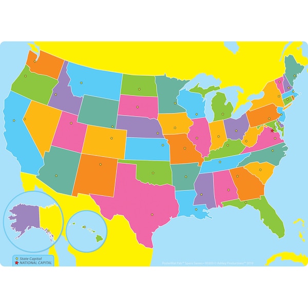 It's a poster, it's a placemat, it's both! Smart Poly® material has been designed for the classroom and home. The material is strong, durable, water resistant, and does not need lamination. Heavy duty surface for fun and colorful learnings. Write-on/wipe-off surface for use with dry erase or water based markers and washable crayons. Measures 13" x 9.5". Blank US Map to practice learning about US States, bodies of water, and more!