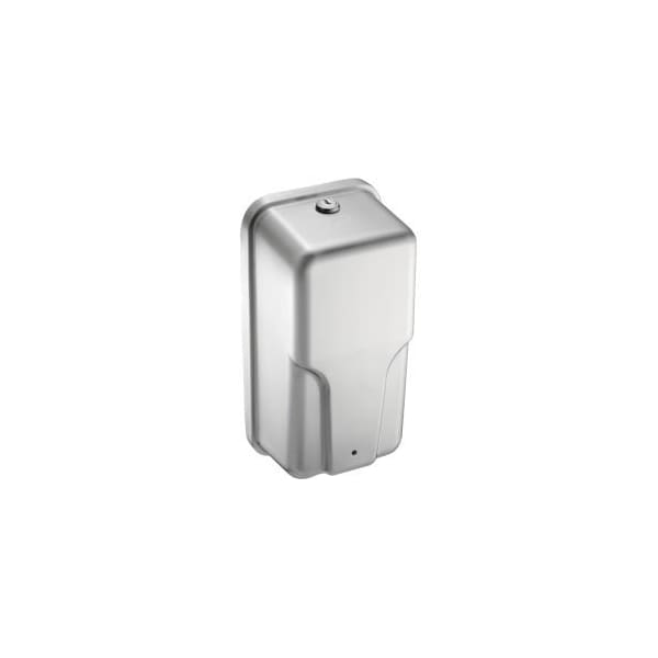 ROVAL AUTOMATIC SOAP DISPENSER ROVAL AUTOMATIC SOAP DISPENSER IS A HANDS-FREE, BATTERY-OPERATED SOAP DISPENSER. DISPENSING CYCLES ADJUSTABLE WITH TAMPER PROOF MAGNETIC KEY. SEAMLESS DRAWN TYPE 304 STAINLESS STEEL COVER. TRANSLUCENT REMOVABLE INTERNAL TANK FOR EASY-TO-VIEW SOAP LEVEL. LED INDICATES ADJUSTMENT AND OPERATION. CAPACITY: 33-4/5 OZ. (1000 ML). DIMENSIONS: 5-1/2"W X 4"D X 10-7/8"H. POWERED BY 6 AA-SIZE BATTERIES (NOT INCLUDED).