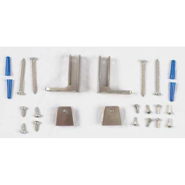 (2) Stainless Steel One Ear Brackets, (2) Stainless Steel U-Brackets, (4) #10-24 x 3/8 in Barrel Nuts, (4) #14 x 2-1/2 in Screws, (4) #14 x 3/4 in Screws, (4) 1/2 in Step Bolts, (4) 14/16 x 1-1/2 in Plastic Shields