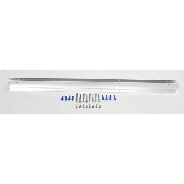 Aluminum Two Ear 38 in Bracket, (4) #10-24 x 1 in Step Bolts, (4) #10-24 x 5/8 in Barrel Nuts, (8) #14 x 2-1/2 in Screws, (8) 14/16 x 1-1/2 in Plastic Shields