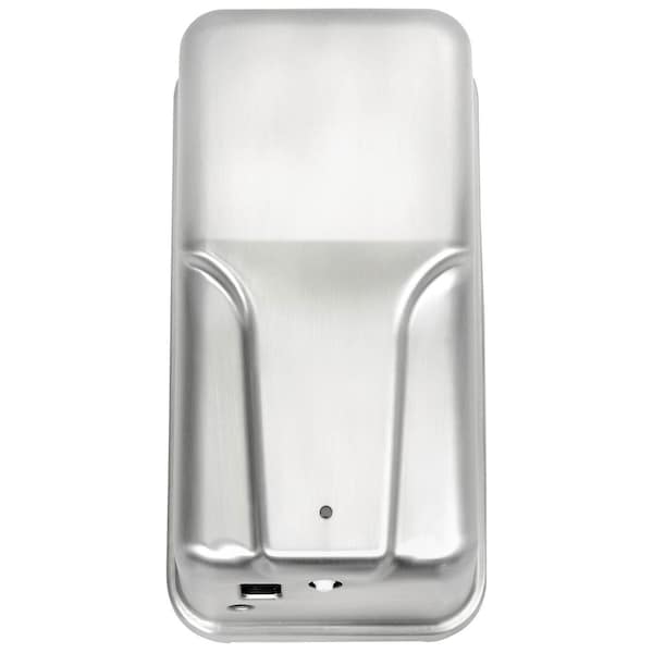 Automatic Soap Dispenser Automatic Soap Dispenser shall hold 33.8 oz of soaps and lotions within the viscosity range of 50 to 3500 cP and dispense in cycles of owner-adjustable single shot volume ranging from 0.02 oz to 0.5 oz with factory initial setting of 0.034 oz. Operation is initiated by hands-free sensor controlled by microprocessor digital circuitry powered by four AA size 1.5 V batteries supplied by others in a concealed compartment and locked inside unit bottom. Unit shall be fabricated of 22 gauge type 304 stainless steel alloy 18-8 with a uniform satin finish over all exposed surfaces. Cover shall have lock keyed alike with other ASI washroom accessories. Unit shall have an LED to indicate function and operational condition on front face. Internal tank shall be translucent to show quantity of soap remaining at any time when cover is opened and shall have an internal shut-off valve to facilitate filling and external storage of full tanks. Owner shall easily and securely adjust dispensing cycle with magnetic fob provided. Unit shall mount to wall on concealed base plate with screws secured under locked cover. Mounting template and manual shall be provided with unit in each carton.
