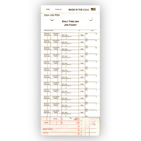 Daily Time And Job Tickets, Dsa-126-Psn, Carbonless, 500 Per Box Pk