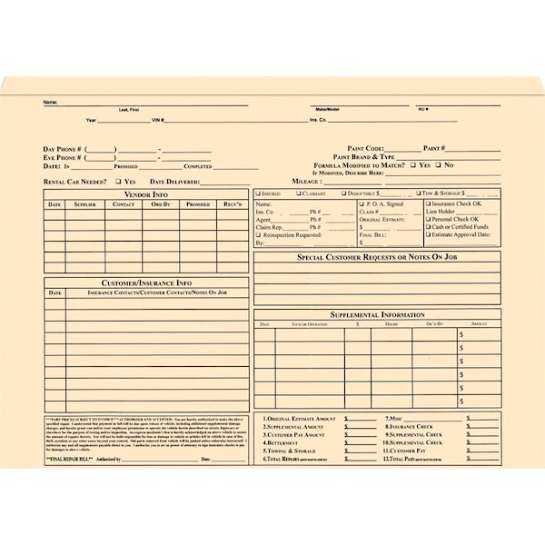 Hvy Dty Body Shop Jackets-Printed, 9 3/8" X 11 3/4", 100 Per Box Pk