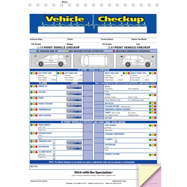 Multi-Point Inspection Form (Plain), 8 1/2" X 11 3/4"-2 Part, 500 Min Pk