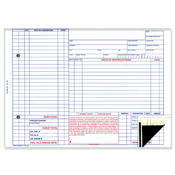 Repair Order, 8 1/2 X 11 5/8-3 Part, 100 Per Pk Form No Ro-546H-3Pt Pk