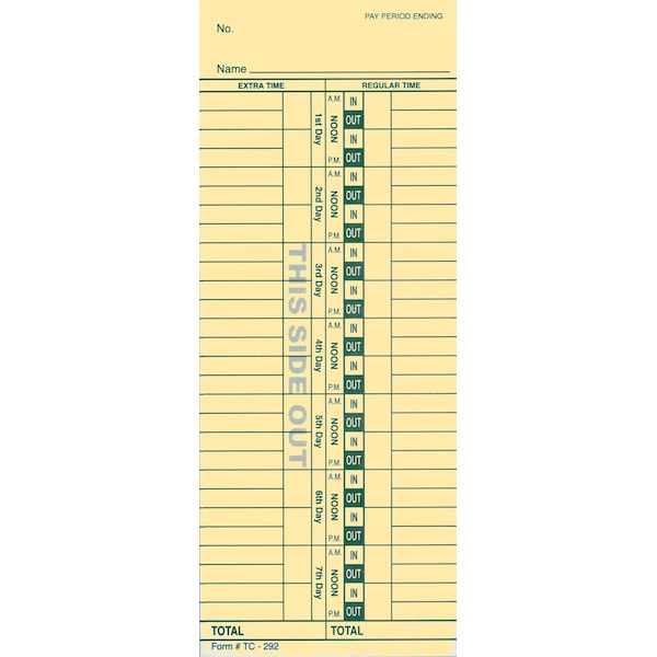 Time Clock Cards - 2 Sided, 3 1/2" X 9", 250 Per Pack Pk