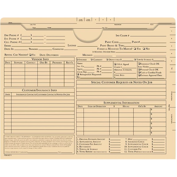 Most popular and thickest body shop jacket used in the industry. Pre-printed Jackets / - 9-1/2? x 11-3/4? - 150# stock - Prints in Black ink on both sides - Packaged 500 per box (5 inner boxes of 100 per master carton)