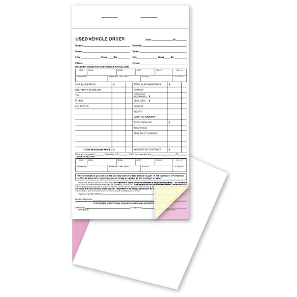 Used Vehicle Order Books, 5 1/2" X 9" - 3 Part, 1 Book (50 Per Book)