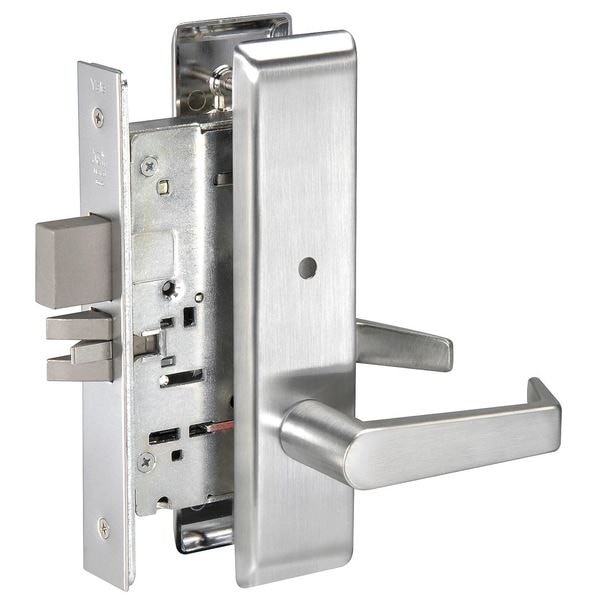 Mortise Lockset w/Escutcheon, Heavy Duty, Commercial, Augusta (Right Angle) Style, Satin Chrome (626) Finish, Function Privacy, Grade 1, Material Brass, Stainless Steel, Zinc, For Door Thickness 1 3/4 to 3 3/4 In., Backset 2 3/4 In., Front Size Dimension 8 x 1 1/4 In., 1 1/4 x 4 7/8 Required Door Thickness 1 3/4, Fire Rated 3 Hours, Case Material Wrought Steel, Zinc Dichromate, For Use With Wood or Hollow Metal Doors, Includes Escutcheon Plate