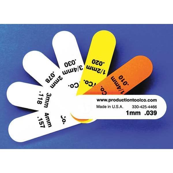 Feeler Gauge, Finish Uncoated, Blade Length 76 mm, Blade Material Plastic, Blade Style Short Blade, Dimension Type Metric, Included Certification Not Applicable, Non-Marring No, Number of Feeler Blades 7, Tolerance +/-5 Percent, Blade Width 19 mm, Included Blades 0.25mm, 0.5mm, 0.75mm, 1mm, 2mm, 3mm, 4mm, Locking Device No, Markings Metric, Non-Magnetic Yes