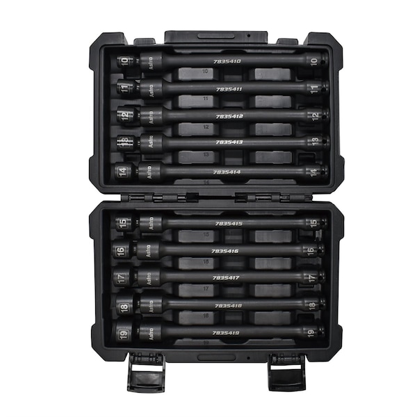 10Pc 3/8 In. Drive 6Pt Pinless Universal Torque-Saver Impact Extension Socket Set - Metric