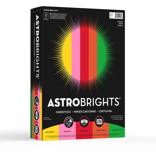 Astrobrights Colored Cardstock is high-impact paper that features bold, deeply saturated colors to make your creations stand out. Its 65 lb. paper weight makes it the perfect choice for flyers, school projects, direct mail and much more. It is acid-free and lignin-free for long-lasting color yet it is smooth enough to work with inkjet and laser printers. Don't worry about expensive ink for full-color prints. Simply add black to create dazzling postcards, booklet covers, presentation binding and paper crafts. Vintage Assortment includes Solar Yellow, Pulsar Pink, Re-Entry Red, Orbit Orange and Gamma Green. When you can't choose just one color, assorted cardstock packs make it so you don't have to. Use brighter colors for brighter ideas.