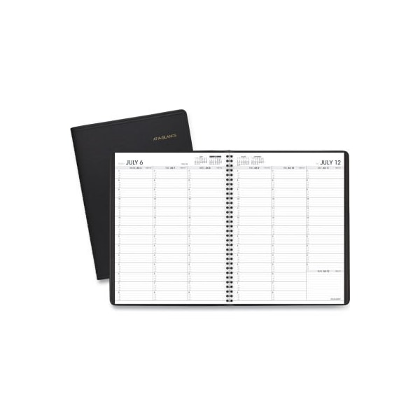 Weekly professional appointment book takes planning seriously with daily appointment times every 15 minutes in neat columns for a quick view of the week. Dated, detailed planning pages range 14 months from july to august. Two-page-per-week spreads include quarter-hourly appointment times from 7 am to 8:45 pm on weekdays and 7 am to 5:30 pm on saturdays. Weekly pages also feature ruled daily columns, an abbreviated ruled area for sundays, count of days/days remaining, numbered weeks, and past, current, and two future months reference. The current reference month is boxed, and the current week is highlighted for easy identification. Wirebound, nonrefillable appointment book offers simulated leather cover and telephone/address pages. this product arrives to most customers in 2-3 business days.