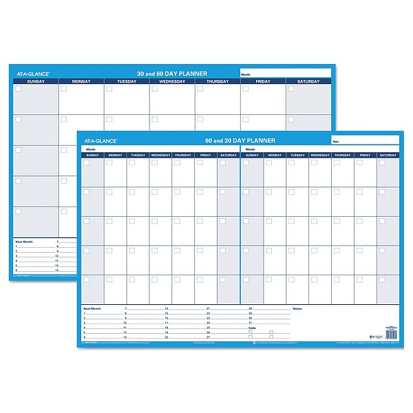 Undated Horizontal Erasable Wall Planner, 36 x 24, White/Blue Sheets, Undated, 30/60-Day
