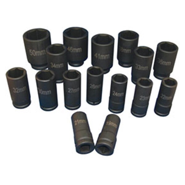 16 Pc. 0.75 In. Drive Deep Metric Impact Socket Set