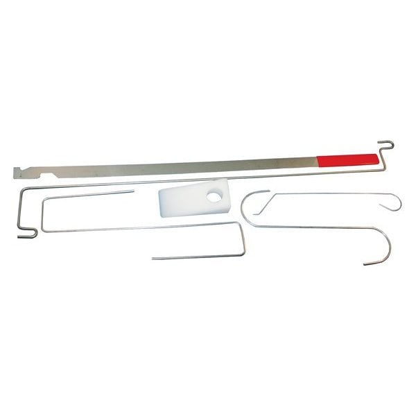 (1) Universal lockout tool for most standard locks; (1) Button jack lockout tool for button-type locks; (1) Vent key lockout tool for truck and van vent windows; (1) Slide-unlocked tool; (1) K-key for opening locks directly through the key hole; (1) Wedge
