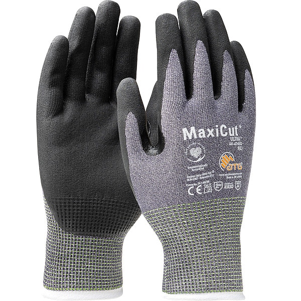 Knit Gloves, ANSI/ISEA Cut Level A4, Hem Style Finished, Glove Style Seamless Knit, Knit Material Polyester, Spandex(R), ANSI/ISEA Abrasion Level 4, Hand Protection Style Glove, EN 388 Rating EN 388 4343D, Standards TAA Compliant, Base Coating Material Nitrile, Palm Type Coated, Glove Coating Cover Palm and Fingers, Glove Hand Style Left and Right, Double-Dipped No, Coating Type Dipped, Package Quantity 12