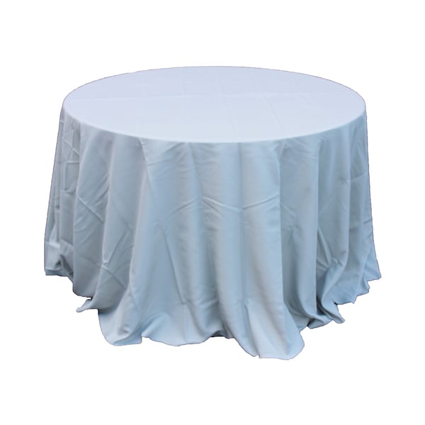 108" round polyester tablecloth. Fits 60" round folding tables for 24" drop or full floor drop on a 30" cocktail table. 200 GSM Machine wash!