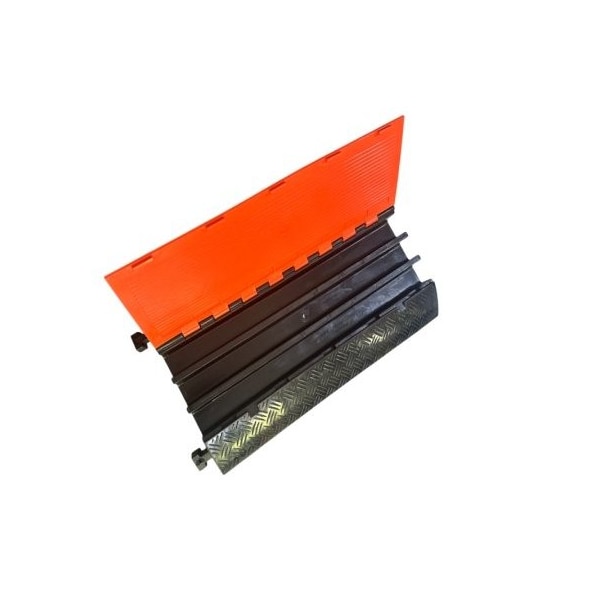 Heavy Duty Cable Protector Ramp - 3 Channels - Orange Lid/Black Base - 1PC