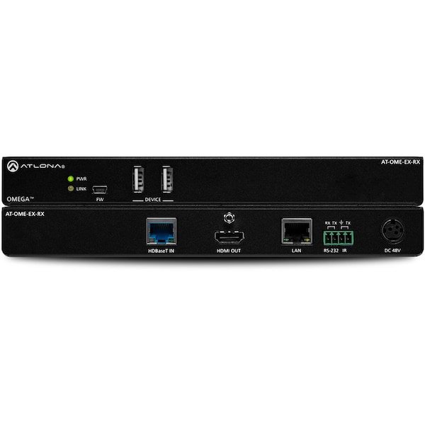 The Atlona Omega 4K UHD HDMI Over HDBaseT Receiver with USB Control is a video extender receiver with 3 USB ports.