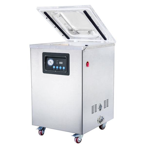 The DIABLO 20D is a high-performance chamber vacuum machine designed for restaurants, catering kitchens, butcher shops, and foodservice operations requiring reliable vacuum sealing for storage, sous-vide cooking, marination, or portioning. Its robust construction supports higher-volume operations while remaining suitable for countertop or prep-table placement. Key Features & Design Stainless-steel exterior and chamber for durability, easy cleaning, and hygiene in commercial environments. Large chamber accommodates bigger vacuum bags or bulk portions, suitable for high-capacity food preparation. Extended sealing bar ensures consistent, professional-quality seals for standard vacuum bags. Powerful vacuum pump efficiently removes air for tight seals on both dry and moist products. Simple user interface with time-based vacuum cycles and integrated marination function for faster flavor infusion. Compact yet sturdy design allows stable countertop placement without requiring large floor space. Operates on standard commercial electrical supply compatible with most kitchens. Performance & Capabilities Ideal for vacuum-sealing meats, fish, vegetables, sauces, or complete meal portions to extend shelf-life and maintain quality. Chamber design safely handles liquids and wet products, preventing bag collapse and ensuring reliable seals. Marination function accelerates infusion of marinades or flavorings, improving preparation efficiency. Fast cycle times support busy kitchen workflows, reducing bottlenecks in production. Why It's a Strong Choice The DIABLO 20D combines commercial-grade vacuum performance, durability, and countertop flexibility. It is ideal for kitchens and catering operations that need consistent, high-quality vacuum sealing for preservation, sous-vide cooking, or marination without the need for bulky floor-standing machines.