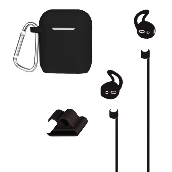 Protect everything you need to listen to music and take calls without missing a beat! The AT&T AirPods Case and Accessories Kit in Black is ideal for traveling, with a convenient neck strap that allows you to wear your AirPods as sport earphones or safely rest them when not in use. Made with premium-quality rubberized silicone, the AirPods Case and Accessories Kit is built to withstand constant use.