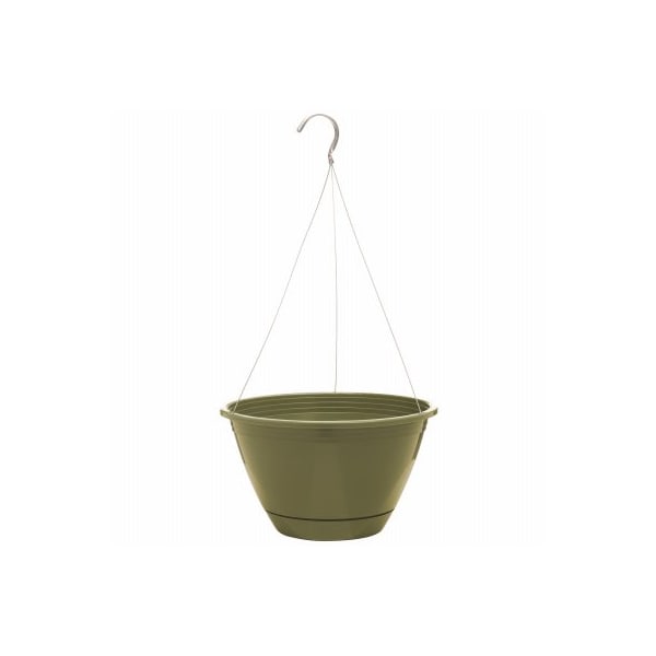 10, Olive Green, Hanging Basket Planter, With Attached Saucer, Hangers Included