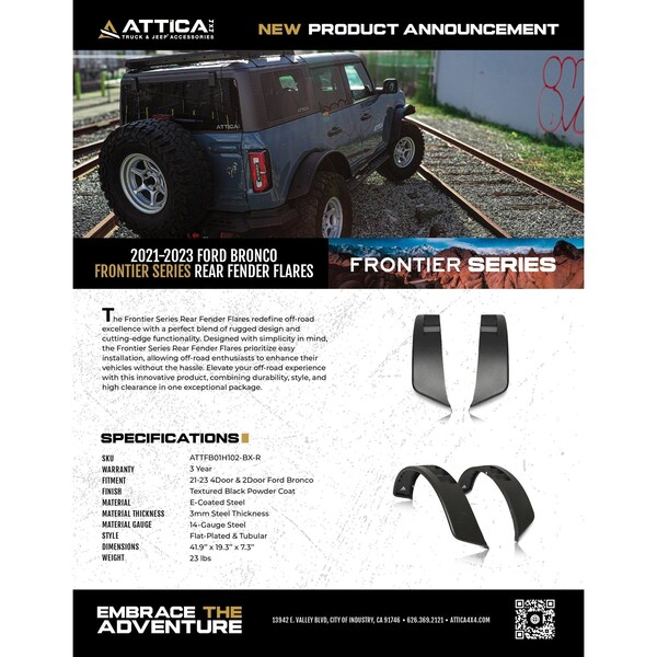 Ford Bronco 2021-2024 2dr and 4dr rear Fender flares - Black - Powder Coated - Steel