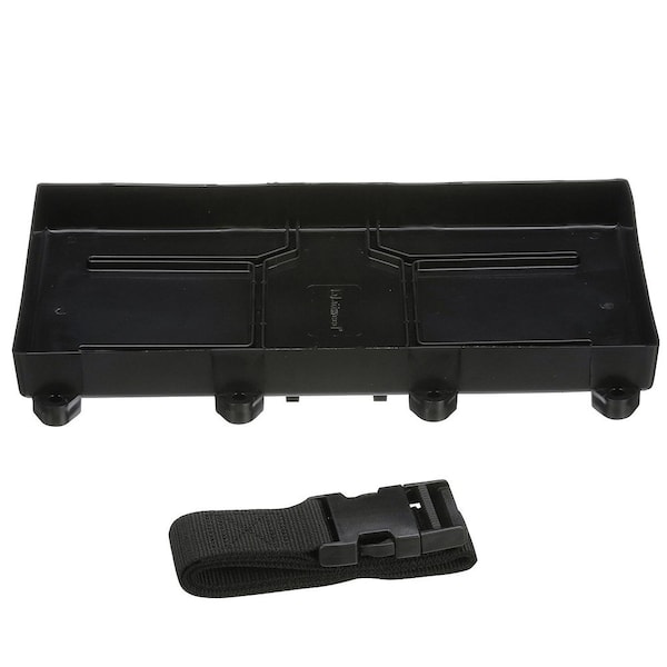 29/31 Battery Tray with StrapsA simple-to-install battery holder that fits into limited spaces. This tray is for batteries up to 10-1/2 inches in height. Provide a simple installation for changing or replacing batteries.Features:The polypropylene hold-down strap has a positive-locking, quick-disconnect buckleMolded base mounts with four #10 Panhead fastenersSpecifications:Inside Dimensions: 12-7/8'' L x 7'' W
