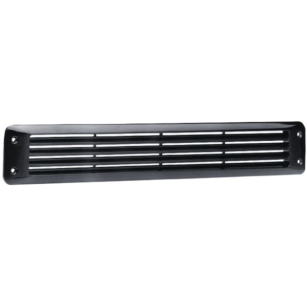 Canted louvers deflect rain and spray and help conceal the collector box. Black ABS plastic. Installs flush to the hull with #8 screws. Use with 13411 collector box for 3" system. Dimensions: 17-9/16" L x 2-3/4" H x 1/4" D