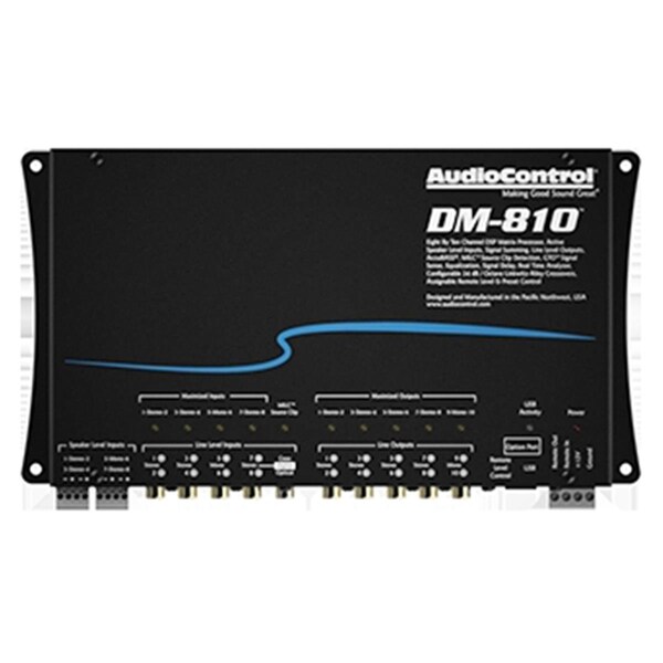 The powerful DM-810 processor allows users to truly optimize the performance of their audio system, regardless of whether they are using a factory or aftermarket source, and to truly achieve the goal of "Making Good Sound Great". These highly versatile Digital Signal processors are equipped with key features, such as active speaker level inputs, line-level and digital audio inputs, providing up to 10 channels of output. AudioControl's DM Smart DSP app contains the power of AudioControl processing through a flexible interface packed full of features in a simple lay out. Configure signal summing, 30 bands of equalization, signal time-alignment, input delay and phase correction, plus AudioControl proprietary features like AccuBASS , GToTM Signal Sense, and MILCTM as well as integrated input and output RTA's.