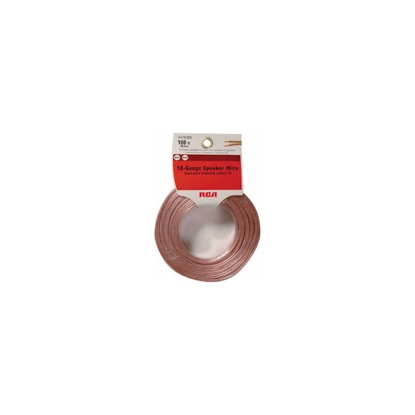 100 ft, 18/2 Speaker Wire, With Clear Insulation, Connects Speaker To Tuner/Amplifier, Carded.