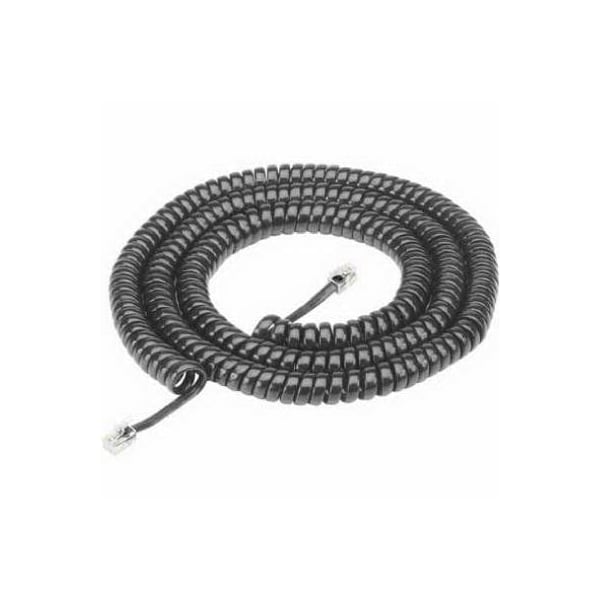 25 Black Coiled Modular Handset Cord With Attached Modular Plug Ends Blister Carded.