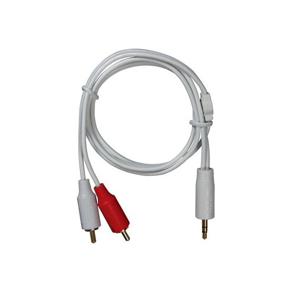 Jensen, 3', 35 mm, White, Y To RCA Plug, MP3 Adapter Cable Stereo 35 mm Plug To Stereo RCA, Connects Portable Audio Players To Your Stereo