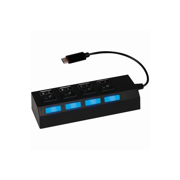 USB C to 4 Port USB Hub Individual LED onoff switchConnects up to 4 devices Plug and play Perfect for work or travel